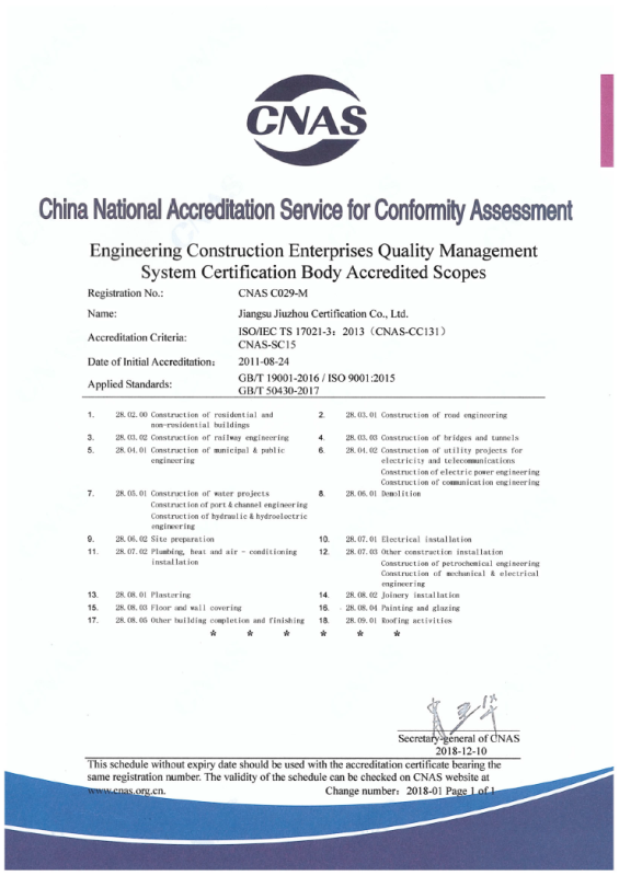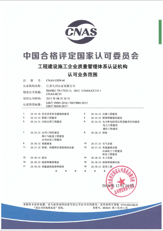 工程建設施工企業(yè)管理體系認可業(yè)務范圍-中文