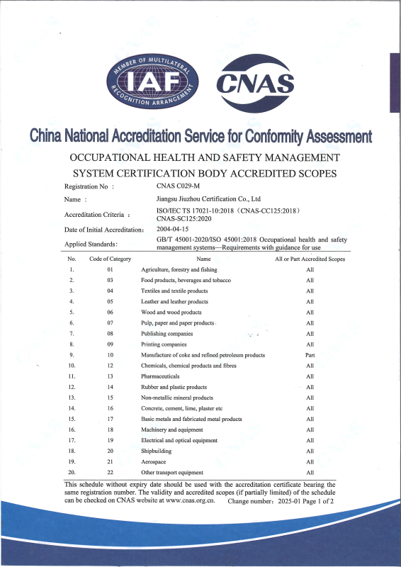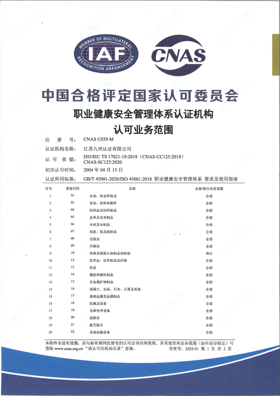 職業(yè)健康安全管理體系認可業(yè)務范圍-中文1