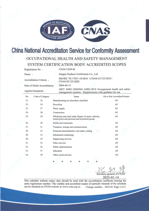 職業(yè)健康安全管理體系認可業(yè)務范圍-英文2