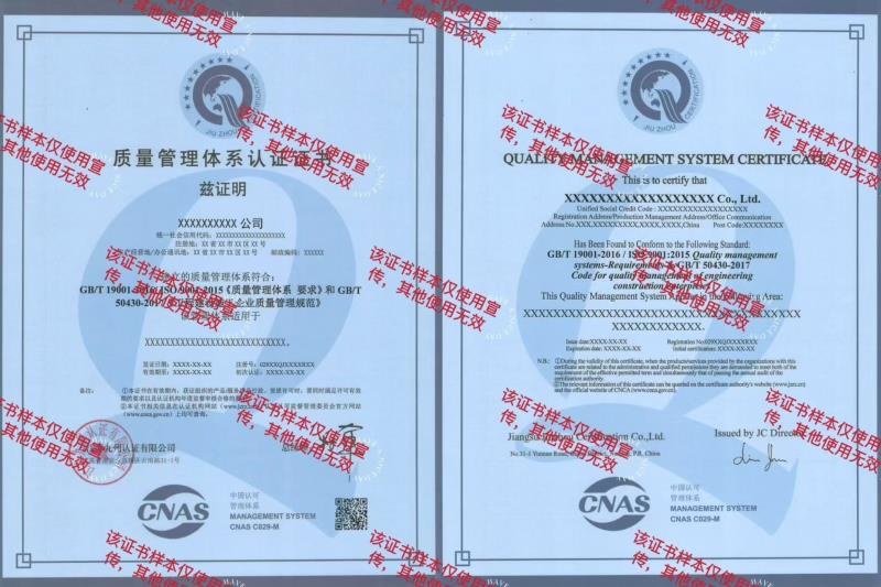 版權(quán)所有 All Rights Reserved 江蘇九州認(rèn)證有限公司 蘇ICP備05023393號 蘇公網(wǎng)安備32010602010942號 地址:南京市云南路31-1號蘇建大廈 郵編:210008 電話:025-83329736;83315410;83235215 E-mail:jsjzrz@jzrz.cn